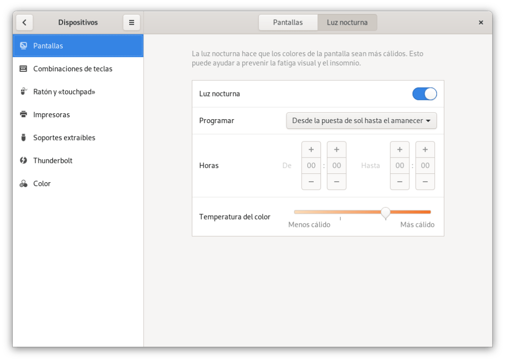 Lo que hace el anterior código es verificar si tengo activado la función de luz nocturna, para activar esta función si es que no lo tienes habilitado solo tienes que ir a Configuración y en la sección de Dispositivos puedes activarlo.